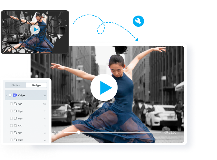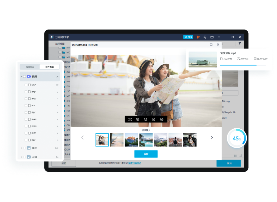 支持修复14种主流视频格式、13种图片格式5种音频格式和Word、Excel、PPT、PDF文件