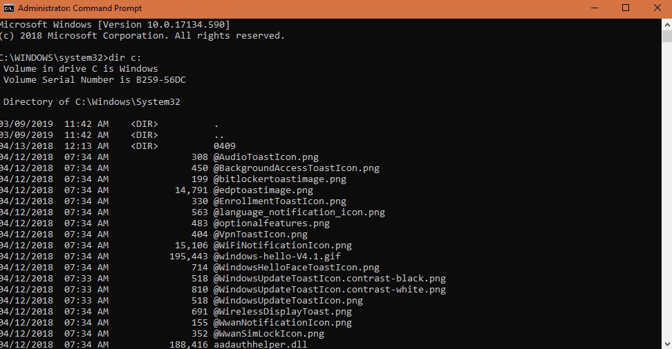 - 在命令行中 键入dir以检查安装Windows 10的系统驱动器。