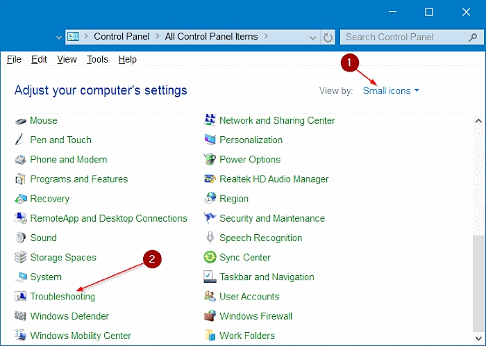1. 在系统上启动控制面板,然后转到“故障排除”部分。