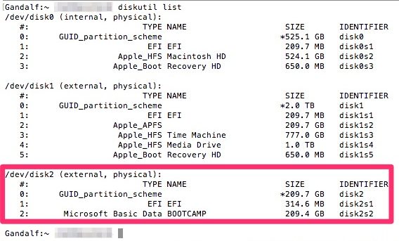 - 启动终端后,输入命令“diskutil list”。这将提供连接到Mac的所有磁盘(内部和外部)的列表。