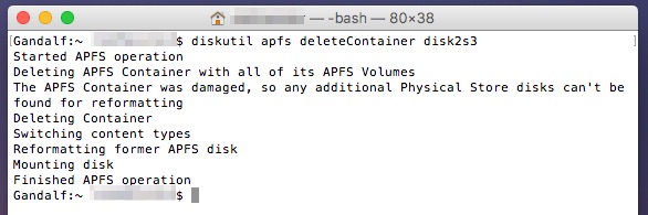 为了合并这些分区并节省更多空间,用户会选择删除macOS Sierra上的现有APFS分区。要执行此操作,需要从“磁盘工具”中弹出容器,然后将其从终端中删除。这可以通过以下简单步骤完成:
