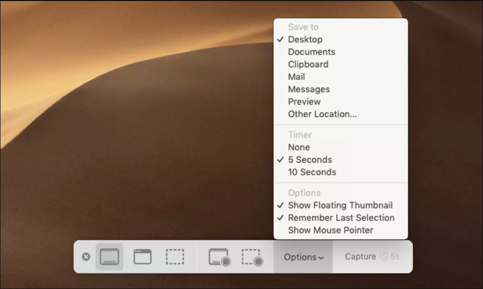 单击Command + Shift + 5键时,打开“保存到”部分,找到保存图像的位置。