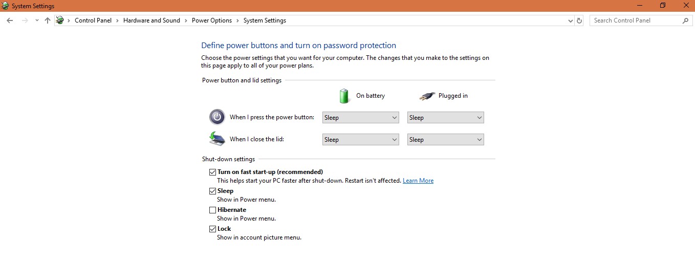 • 单击“选择电源按钮的功能” >“ 更改当前不可用的设置”。