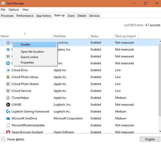 • 打开“ 启动”选项卡,您将在窗口的右侧看到“最后生物时间”。